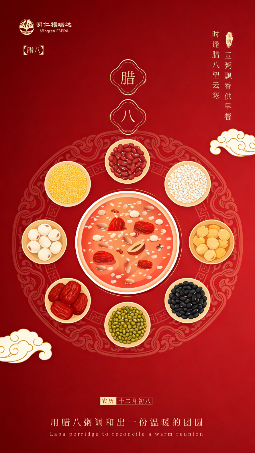 明仁福瑞达始终相信,真正的养生智慧,就蕴藏在顺应自然的古老传承里。腊八一过,年味愈浓,愿您在与家人共享温暖粥膳的同时,也关注身心的适时调养。让我们以传统智慧为引,用温和而持久的方式,在新旧交替之际,为身心注入安稳滋养的能量。